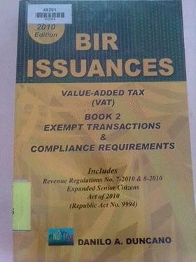 BIR issuances : value-added tax (VAT) book 2 : excempt transactions & compliance requirements /